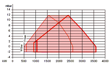 | 功率kW | 球閥前燃?xì)鈮毫?mbar) | 電磁閥前燃?xì)鈮毫?mbar) | ||||||||||||