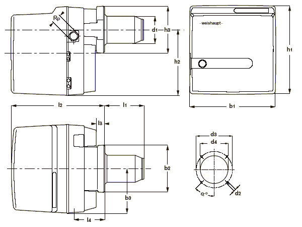 | 型號 | I1 | I2 | I3 | I4 | b1 | b2 | b3 | h1 | h2 | h3 | d1 | d2 | d3 | d4 | Rp | a° |